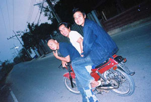and his two buddies Mac and Moo, heading out on the town on his little