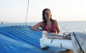 over there. He then jumped off the long-tail and swam to my boat and climbed