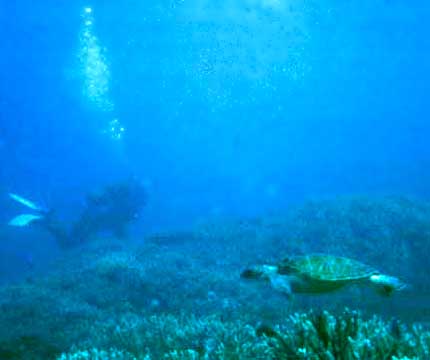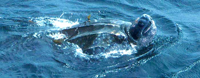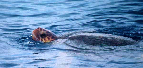 Unless one visits the ancestral nesting beaches at the exact night when females come ashore to lay eggs, observing sea-turtles is limited to shipboard sightings at sea, or underwater encounters while SCUBA diving. I've done the latter two, but have yet to experience the nesting beach phenomena.